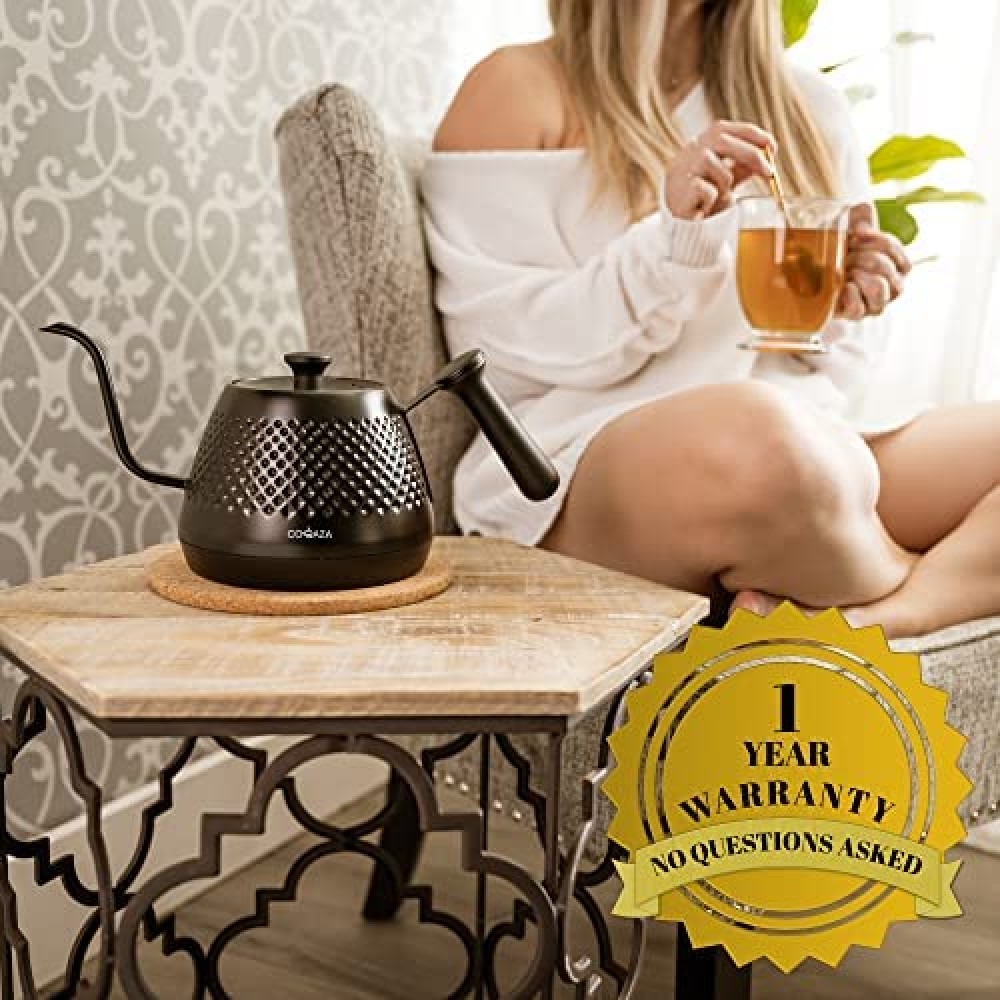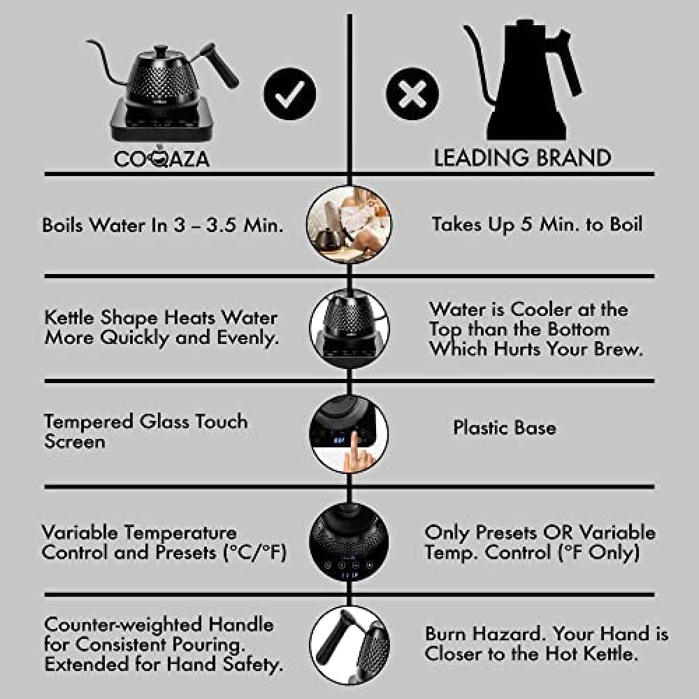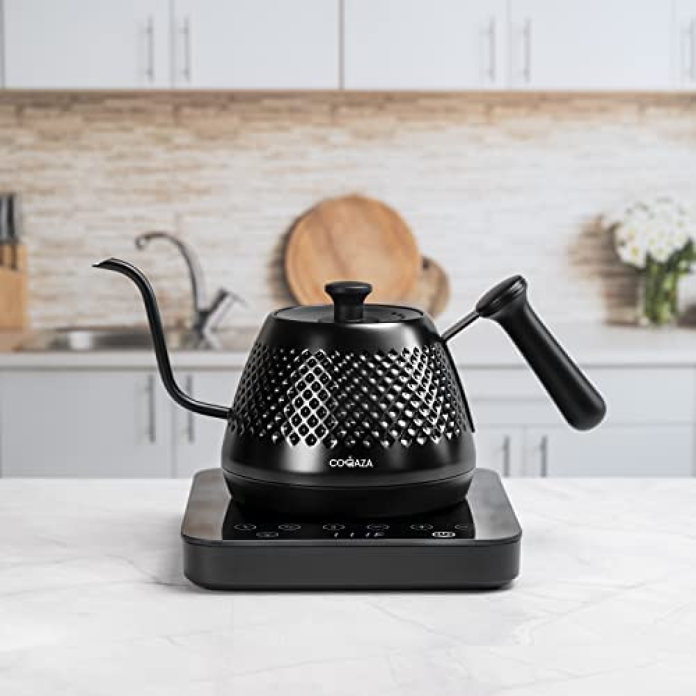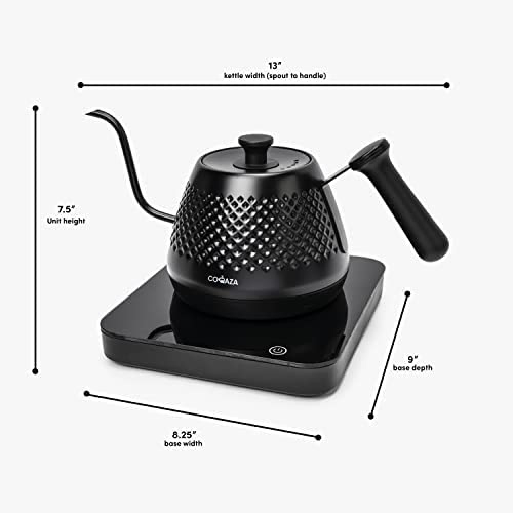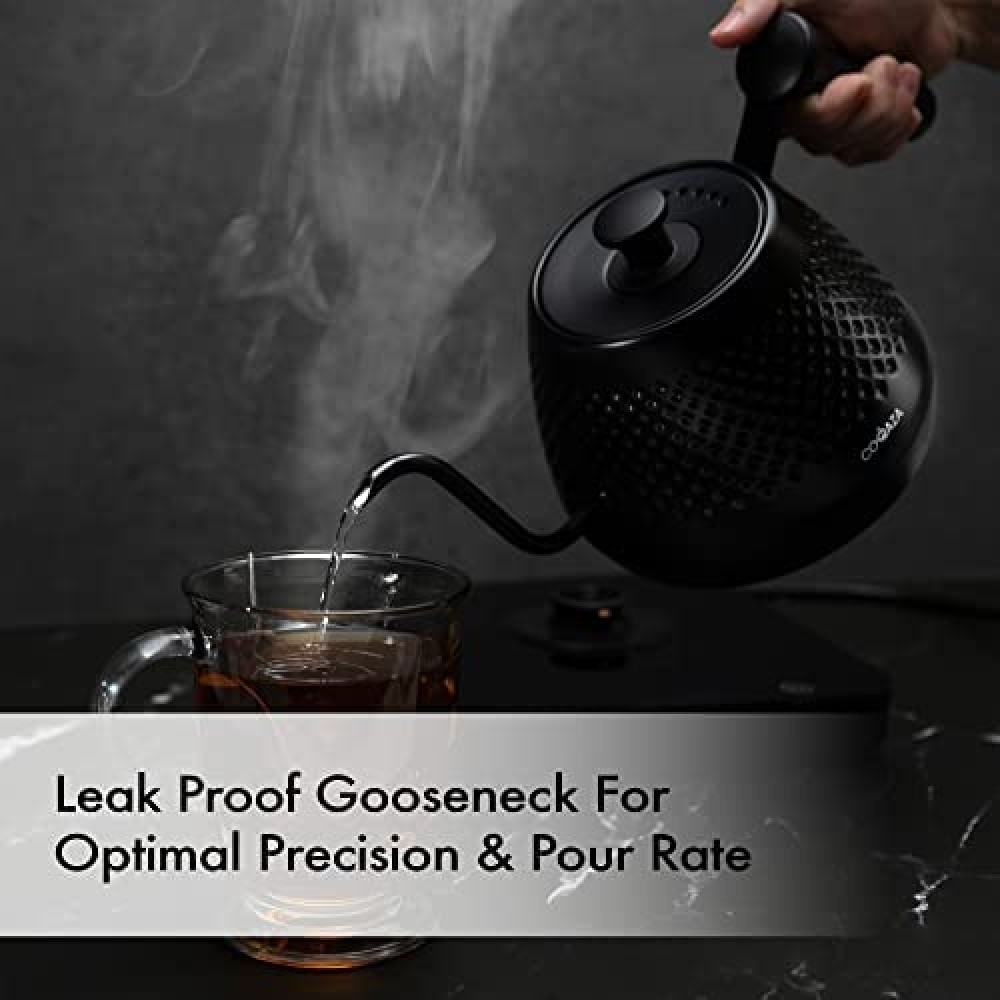 Gooseneck Electric Kettle, Variable Temperature Control & Presets, Pour Over Coffee & Tea Kettle, Stainless Steel Electric Pour Over Kettle, Rapid Heating, Black Tea Kettle, Glass Base